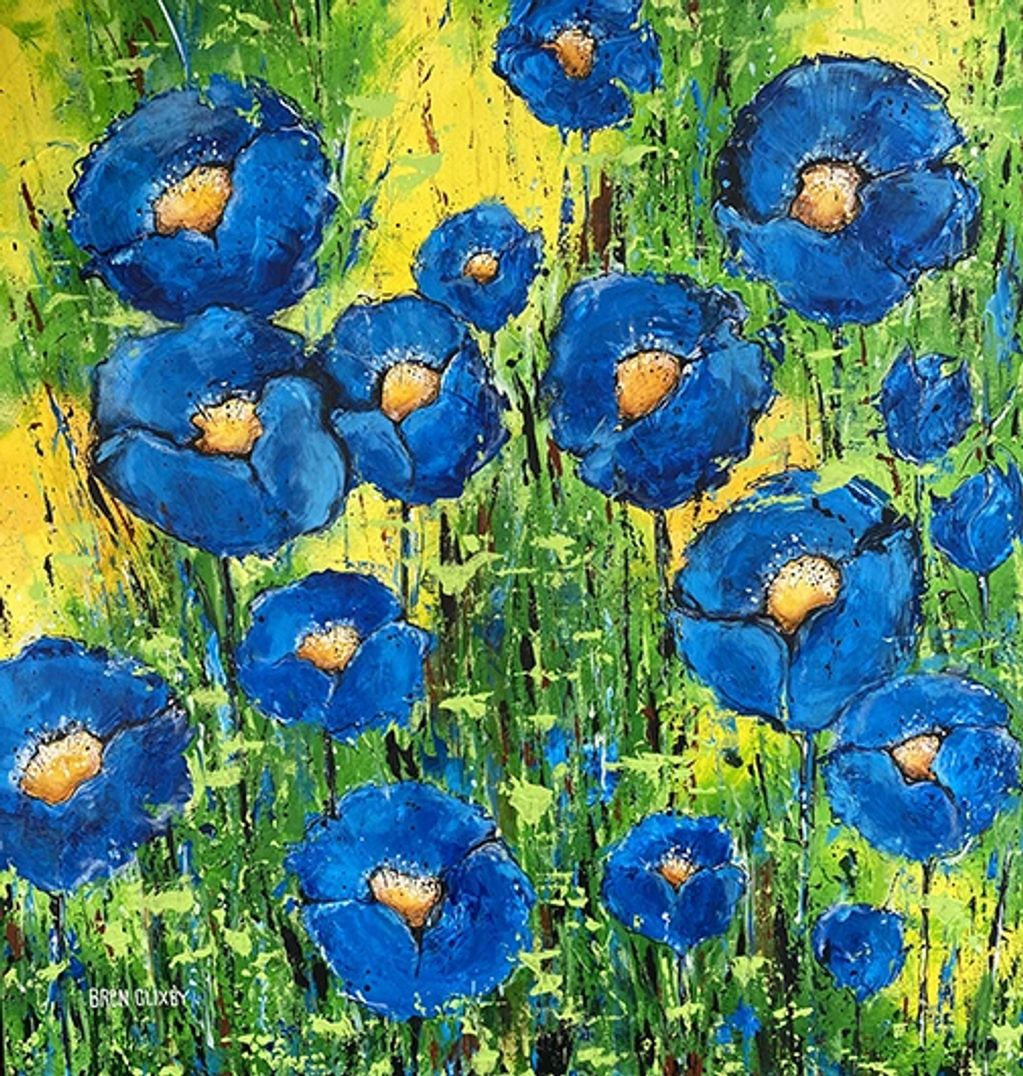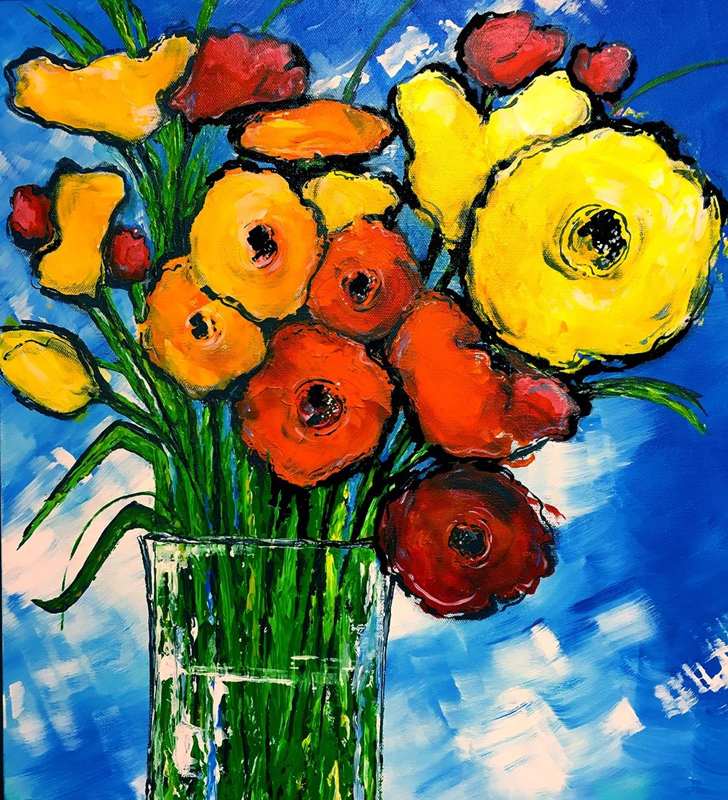 Painting is wrapped around sides, so no framing is needed. Each painting is an original and will vary somewhat. You choose the background and flower colors.