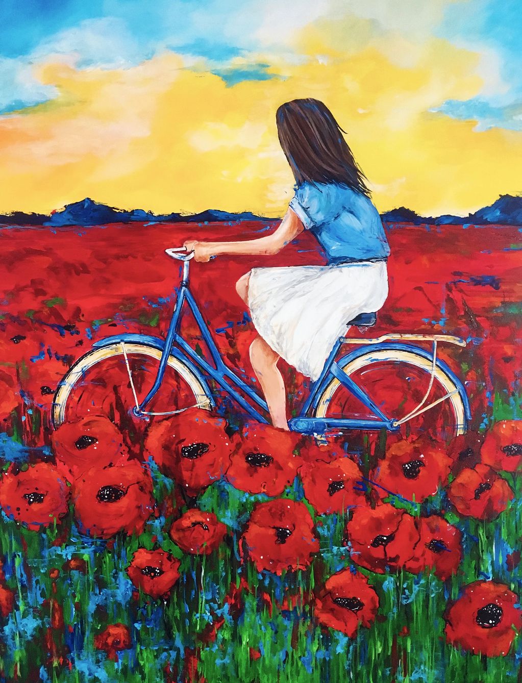 This painting is sold and can be reproduced with variations. Perfect time to add an image of someone you know or a favorite bike. Let's talk!